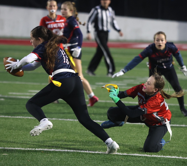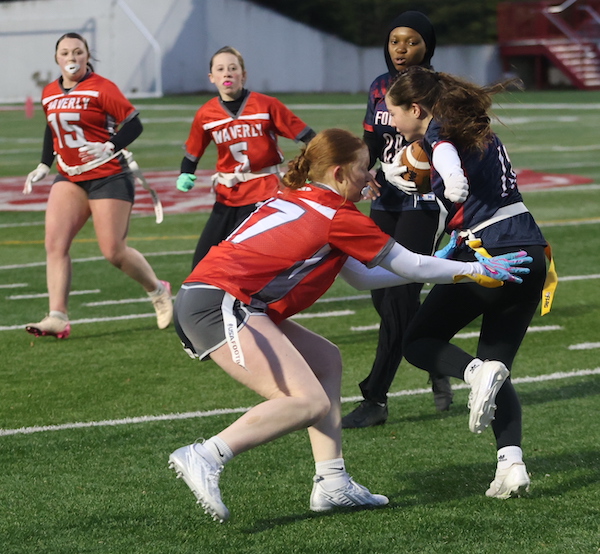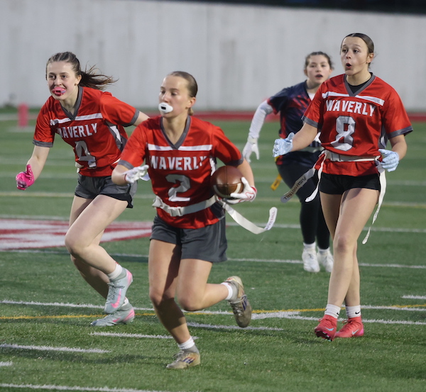 Meeya Wheeler led Waverly with 10 flag pulls, one tackle-for-loss, and one pass deflection, while Clonch had eight pulls, Fisher had four pulls, Douglas added three pulls and one tackle-for-loss, and freshman Adriana Purvis chipped in with one tackle-for-loss.