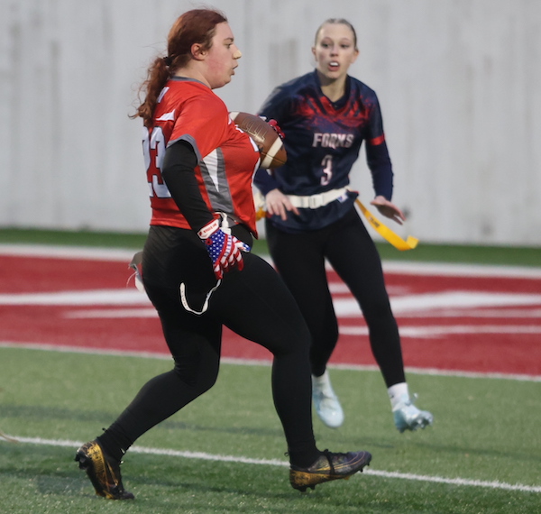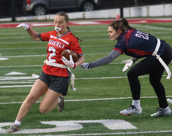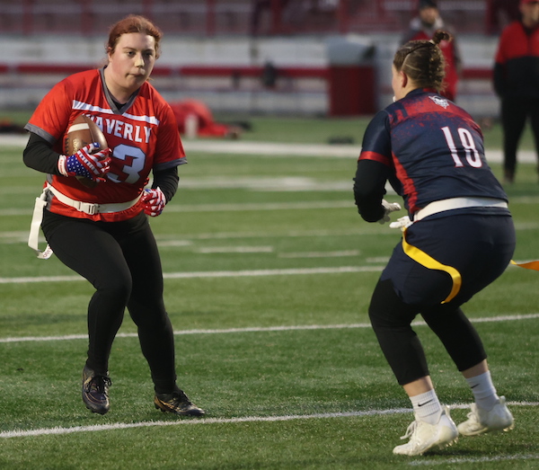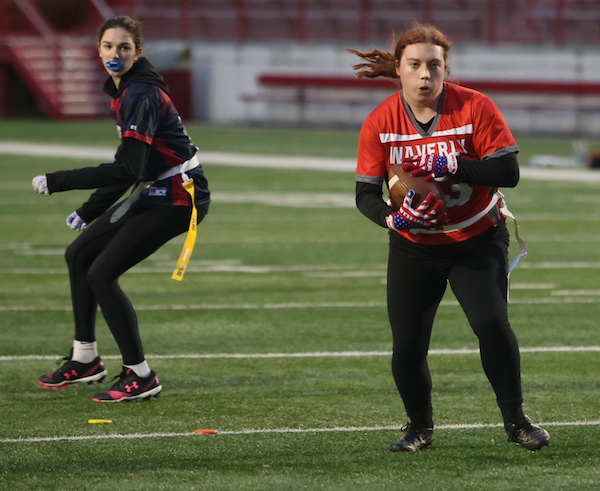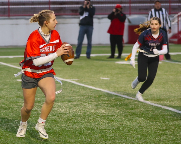 Valley Sports ReportWAVERLY — Senior Brilynn Belles threw for three TDs, and ran for another score to lead Waverly to a 40-0 win over Chenango Forks here Thursday night in Section IV flag football action here Thursday night at Memorial Stadium.