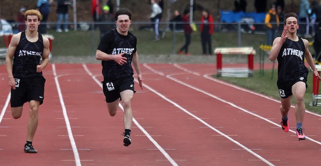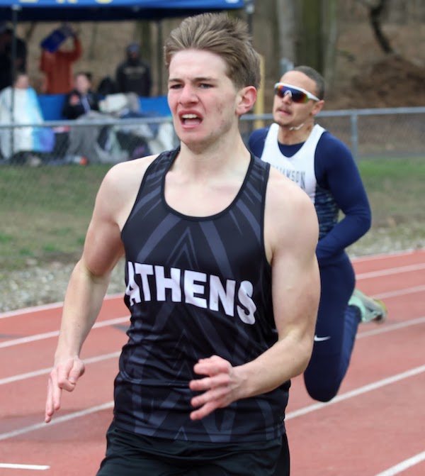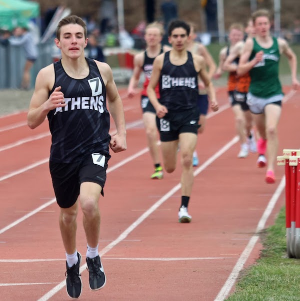 Athens' 1,600-meter relay foursome of seniors Ryan Cook and Alex Thompson, junior Patrick Umber and freshman Avery Gorsline finished second in 3:38.8.