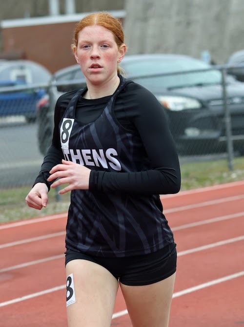 Athens' 1,600-meter relay foursome of Burgess, senior Lizzie Gorsline, junior Marlene Roelle, and freshman Eden Fedorchak finished second in 4:37.19.