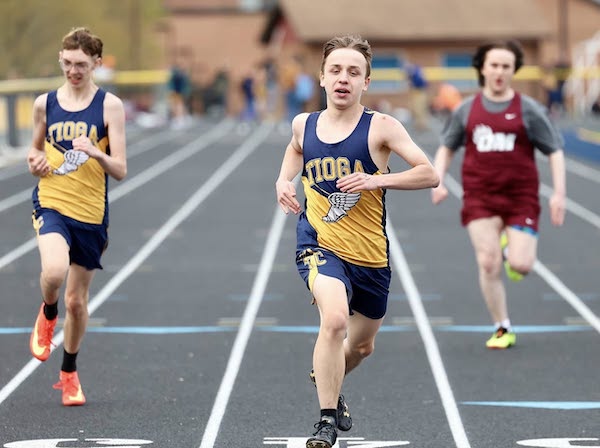 O-M 82, Tioga 59Albrecht won the 100-meter dash in a time of 11.3 seconds, and senior James Miller was second at 12.2 seconds.