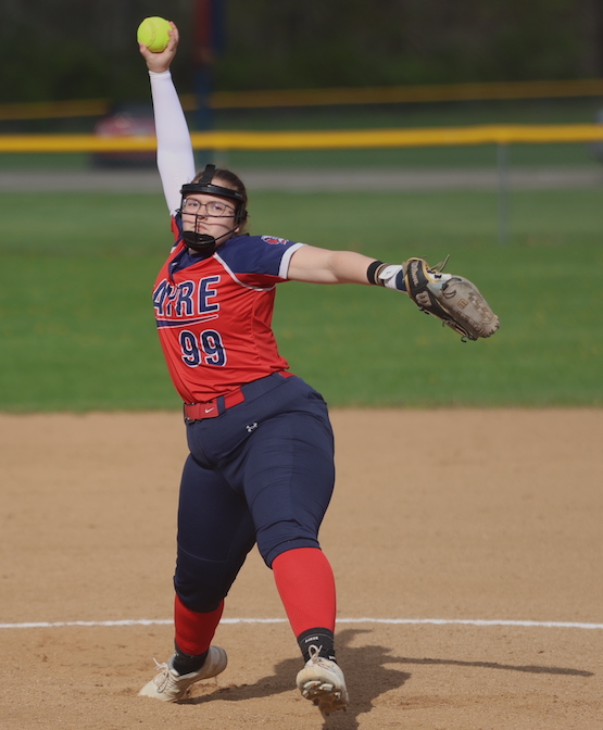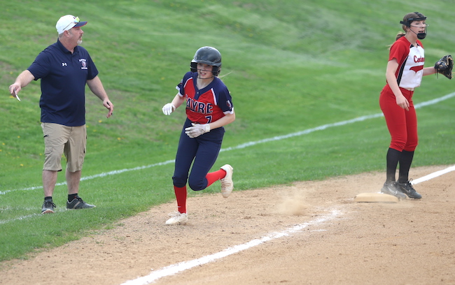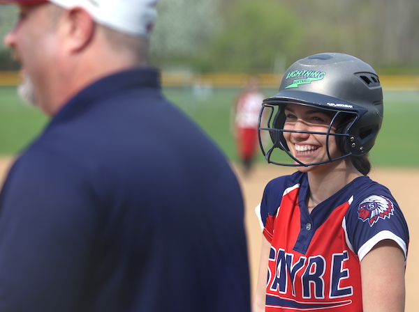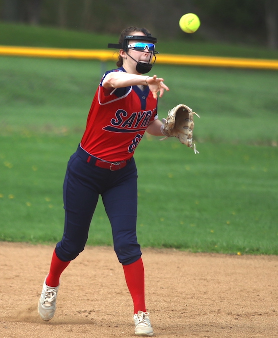 Senior Olivia Thompson tripled and singled, and scored two runs to lead Sayre's five-hit attack, while Parrish doubled and drove in one run, and Lantz and Strickland each added a single.