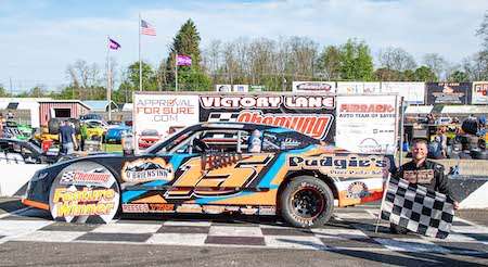 The visiting ROC Modified Tour attracted 25 race teams for the 75-lap feature. Austin Beers, driving the family-owned #9, went to victory lane in an old car that his father, Eric, had run and won in on countless occasions. Beers drew well and started the race on the inside of the second row. Early on he battled with Jack Ely for the top spot before his contenders switched to Daren Scherer and Zane Zeiner. Zeiner, s involved in an early caution, methodically worked his way from the back to the front. Over the final laps, the PA drivers (Beers and Zeiner) put on a great show for the fans. When it was over, Beers got the win with Zeiner, Scherer, Trevor Catalano and Jimmy Zacharias all in the top five. "This one was special to me, being in my father’s car," Beers told the crowd. It also marked Beers’ first win on the ROC Modified Tour. Earlier in the day Zeiner, Andy Jankowiak and Jimmy Zacharias won the three heat races.